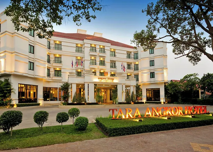 Het Tara Angkor Hotel Siem Reap met 4 sterren biedt een restaurant aan en ligt in de Charles de Gaulle wijk van Siem Reap, op minder dan 250 meter verwijderd van Wat Preah An Kau Saa en op 25-minuten loopafstand van het Handelscentrum van Angkor. Dit hotel bevindt zich niet ver van het Nationaal Museum van Angkor en beschikt over 327 kamers en 4 restaurants.